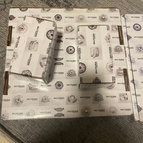 Bremseklosser, bremseskiver, sensor, sensorer, startbatteri, batteri, starter, coil, plugger, tennplugg, tennplugger, oljefilter, filter, luftfilter, drivstoffilter, drivstoff, kupefilter, bremsevæske, registerreim, reim, vannpumpe, løpehjul, strammer, strammehjul, drev, clutch, drivverk, hjullager, hjulnav, lager, toppakning, radiator, eksos, bakpotte, pumpe, bensinpumpe, drivstoff pumpe, caliper, demper, fjær, dempere, fjærer, bremseslange, slanger, motorfeste, svinghjul, lys, lyspærer, lyspære