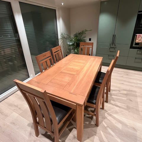 Eik langbord med stålunderstell. Valgfri lengde og farge.
