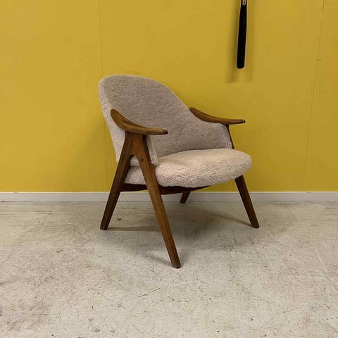 Lenestol med armlen i teak ramme med rotting i natur