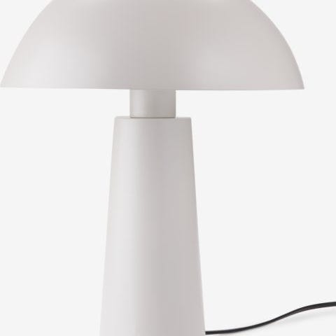 Fungi bordlampe er laget av jern/stål og har en lekker detalj på toppen. Gir et skjermet lys som luner en krok eller nattbord.