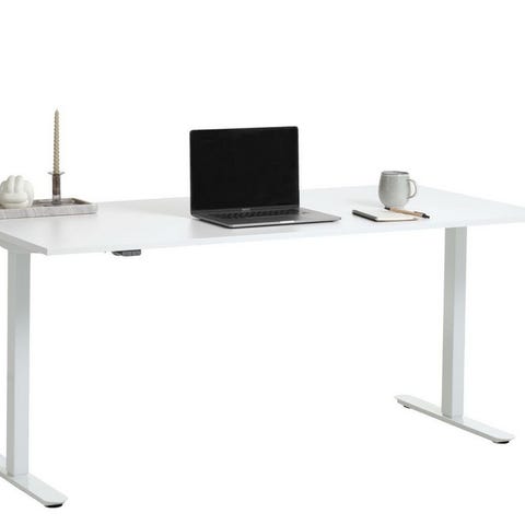 Diverse elektriske hev/senk skrivebord i forskjellig modeller. Sorte, hvite, trefarget, buet, høyre- og venstresving, rektangulære etc.