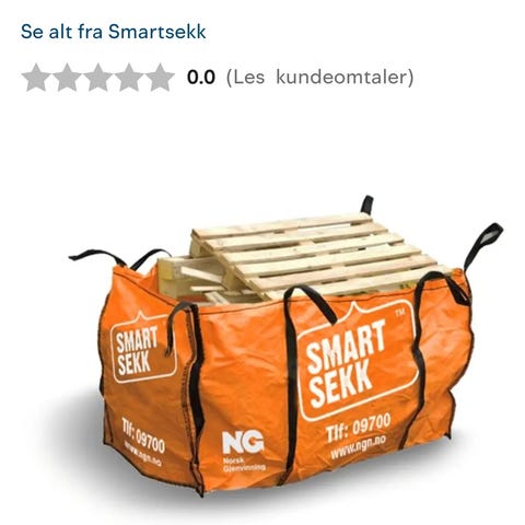 Storsekk med krage som kan knytes i toppen. Kan fylles med maks 1000 kg avfall. Passer til restavfall, hageavfall, treverk, mm. Kan også brukes til oppbevaring av ulike ting/utstyr i garasjen, boden, hytta, etc.