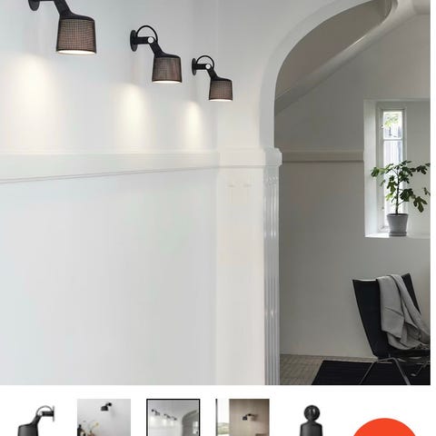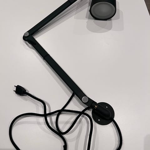Vi selger 1 stk Veggspot i hvit og 1 stk. Veggspot i sort (SOLGT) til -20%! Lampene henger i utstilling, men er så gode som nye. Disse vegglampene er perfekt å bruke som leselys og har bryter på arm.