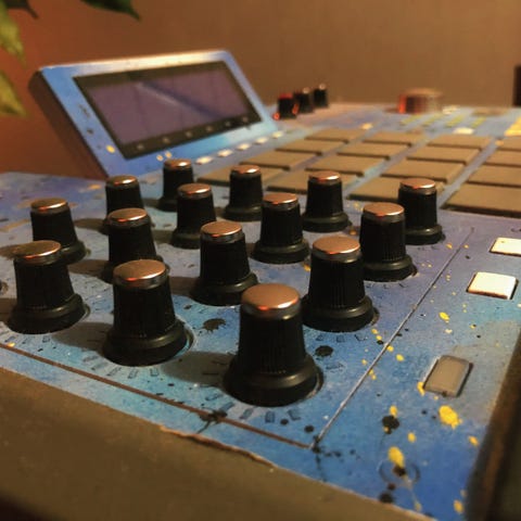 Embedded in the front panel, a 4x4 silicon pad matrix invites you to launch notes, chords, arpeggios and sequences with up to 32 steps for notes and multiple parameter lines. Direct access to the parameters is granted by the seven encoders to the left and the right hand side of the touch screen.