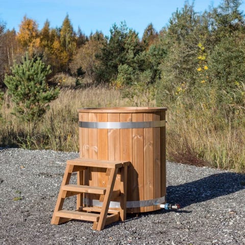 - Ofuro badestamp i glassfiber med trekledning i ubehandlet grantre.