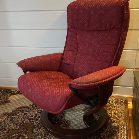 Elegant, klassisk, recliner med nydelig sittekomfort. Fås i mange farger, og forskjellige høyder på understellet. Mange fargevalg