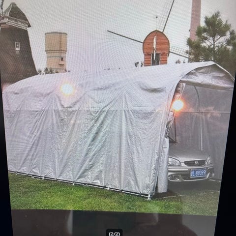 Plasthall/ Garasje modell JIT-1224 pvc er en populær modell på 25,9 kvm som passer godt for deg som trenger god bredde og en lang garasje. Målene er 7.2 x 3.66 x 2.6 m høyde i mønet. Det er montert hanebjelker i toppen som reduserer den frie høyden til 2,40 m innvendig. Dørene henger på en stang som er montert på 2,2 meter. JIT-1224 leveres med galvanisert stålrør ramme med 32 millimeter rør.