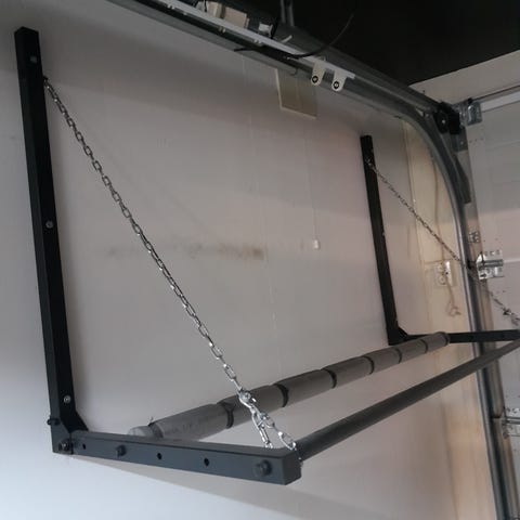 Garasjen har et godt festesystem for hovedduken uten maljer som kan gå i stykker. Det er sveise en lomme på innsiden av pvc duken som det tres inn et stålrør som festes til en jekkestrammer montert på rammen med en stropp.