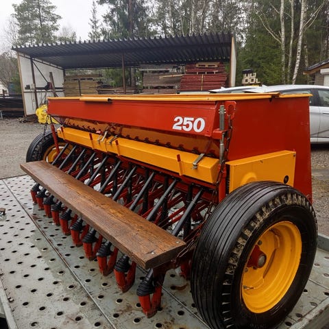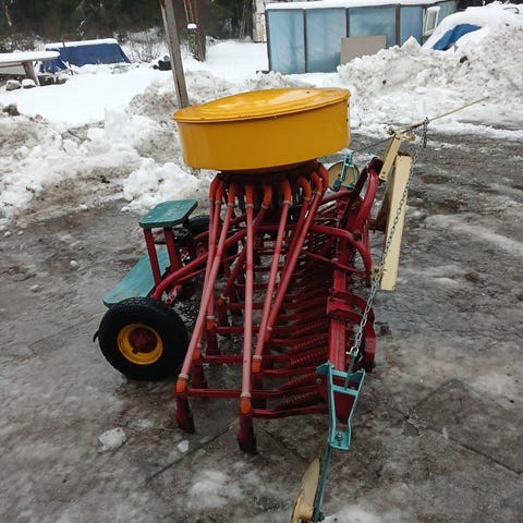 Majssåmaskin i 3 rader. Fungerer for traktor. Maskinen har i tillegg til maisbeholderen også en gjødselbeholder slik at det kan gis gjødsel samtidig.
