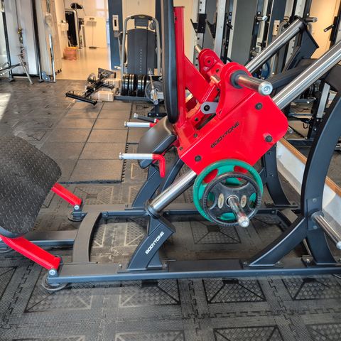 Sittende og stående beinpress bygget opp med en meget solid ramme samt god polstring. Vektvognen glir friksjonsfritt på glideskinnene hjulpet av kulelagre på hver side. Her kan det varieres fra stående knebøy til sittende benpress med enkle grep. Justeringsmulighet på den nederste fotplaten gir ønsket vinkling for de aller fleste brukere. Lang bevegelsesbane gjør at denne passer for brukere helt opp til 205cm samt en kan gå dypt ned uten å støte i noe for tidlig. Dette er et meget kraftig apparat som kan brukes på studio, bedrifter og privat.