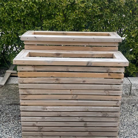 Fine plantekasser på lager. Bygget i royalimpregnert og syrefaste skruer (a4). 100% vedlikeholdsfrie og kan stå ute hele året. Vil gråne.