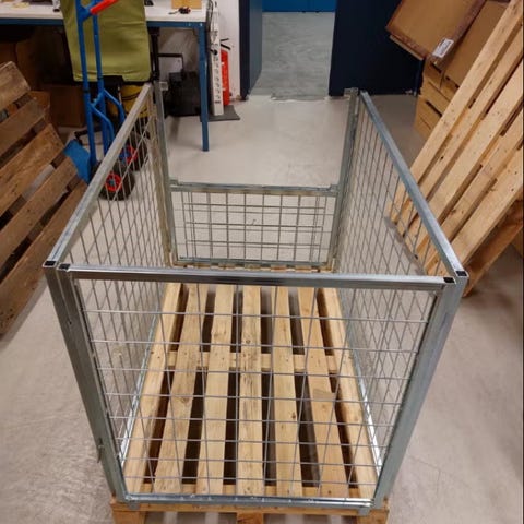 Rullecontainer Pallebur/Transport bur med hevbar bunn og lås på hjul