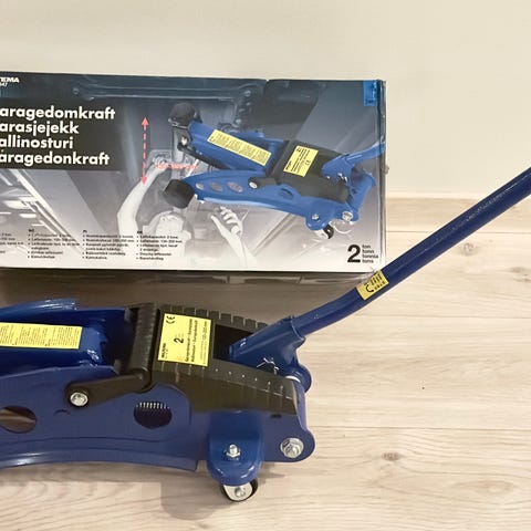 Hydraulisk Danskprodusert verkstedjekk med 2T kapasitet fra AC Hydraulic i Viborg type DK20. Meget god kvalitet, brukes blant annet i WRC Rally