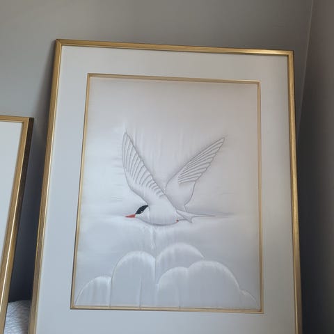 Fugler og trær håndskåret bilde i 3 deler - Fri frakt!