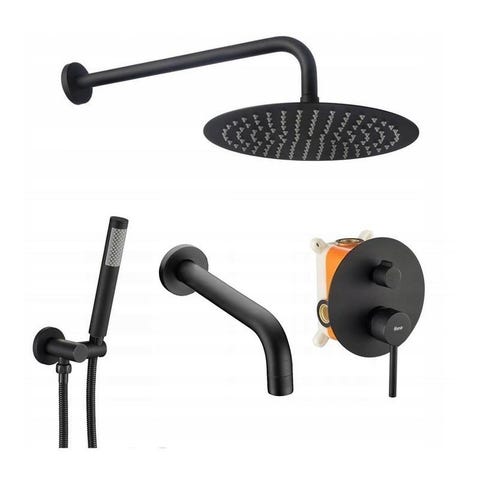LUNGO SVARTmat BADEKAR/DUSJ KOMPLETT F/INNBYGG.