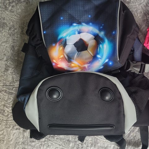 Utvendig nett for drikkeflaske, regntrekk med refleks, LED-lys i front, 2 innvendige rom, godt polstrede seler, 3M reflekser, 3 utvendige glidelåsrom, lav vekt, gode reguleringsmuligheter.