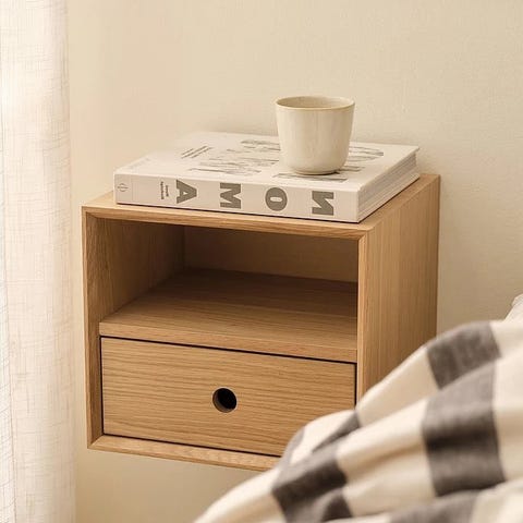 Ny vegghengte nattbord i oljet eik. Produsert av møbelsnekkeri