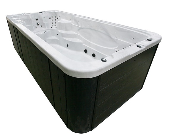 Monaco 850 glassfiberbasseng med nedsenket lamelltrekk er en moderne og elegant best selger. Med trapp på begge sider gir det flere muligheter for plassering av bassenget. Integrert benk mellom trappene, og god svømmelengde mellom trappene. Bassenget er konstruert med benk/beach-sone for nedsenket lamelltrekk.