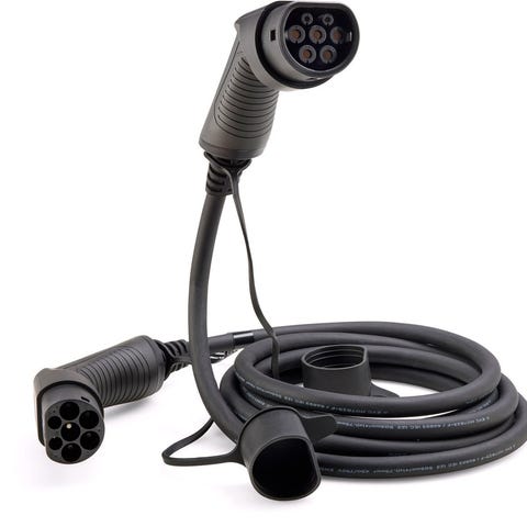 Her er en kabel som passer i standard type 2 vegglader og Type 1 på bilsiden, denne kabelen har en kapasitet på 5KW/20A 1fas.
