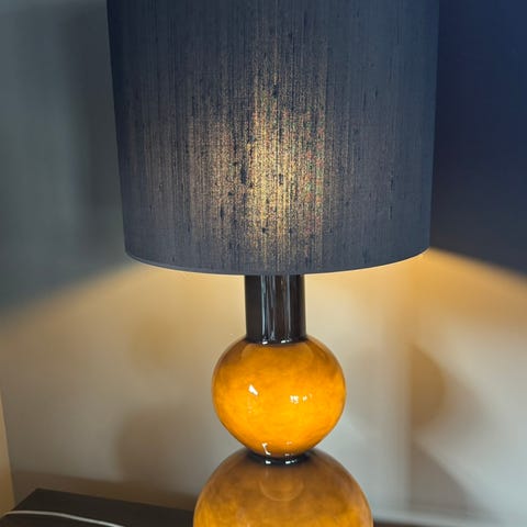 Pæren i foten skiftes ved å forsiktig løsne den sorte toppen av lampefoten (der den store pæren sitter). Da løsner metallringen i bunnen av lampen og du kan forsiktig bytte den lille G9 pæren.
