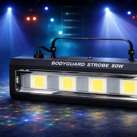 Strobe LED 100W er en kraftig og kompakt strobe-lampe som gir intense lysblink og dynamiske effekter. Den har flere moduser, inkludert Auto og Sound mode, som gjør den ideell for både nybegynnere og profesjonelle brukere. Perfekt for scene, klubb, DJ-oppsett, fester og events.