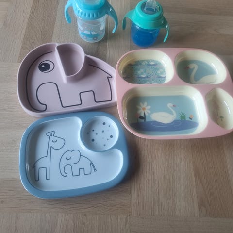 Materiale: Tallerken, bolle: 100% melamin. Glass: 100% akryl. Smekke: 100% PU med polyester bakside.