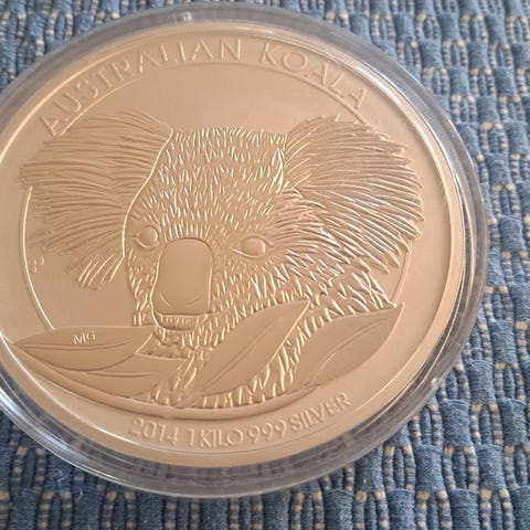 SOLGT 1 kilo sølv, Australia Koala, 30 dollars 2013