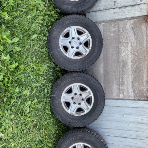 265 70 16, dårlige dekk, tøffe hjul men den ene felgen er ødelagt.