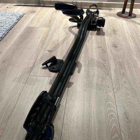 Thule Freeride 532 sykkelholder er utfomet for lastestativ på bilens tak, titanfarget og svært enkel å bruke.