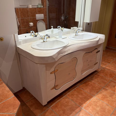 Paneler/ skjørt rundt hele karet, slik at det kan plasseres mot vegg, i hjørne eller helt frittstående.
