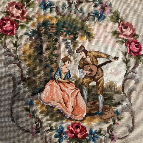 Staselig brodert stol fra 1930 tallet..rokkokko stol og en herlig grønn lenestol..450 pr.stk