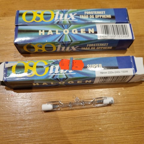 En rekke pærer selges. Prisen er oppgitt pr .stk Philips halotone. Plus line pro. 240v R7s. 2400lm. 78 mm.