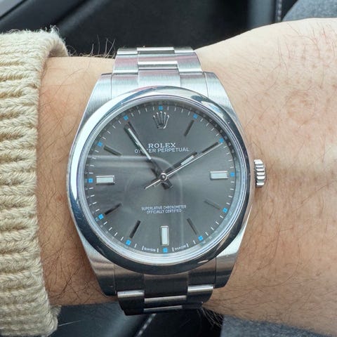 *Solgt*Rolex OP39 med hvit tallskive, 114300 norskkjøpt komplett 2017