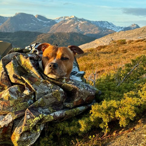 Jervenduk for hunden. Når den firbente har behov for å hvile på turen, er Jervehiet perfekt. Ytterstoffet er det samme som i Jervenduken original, og er dermed både vann- og vindtett. Kombinerer du duken med thermofôr (vattering selges separat), har du en fleksibel og varm seng som hunden garantert vil sove godt i.