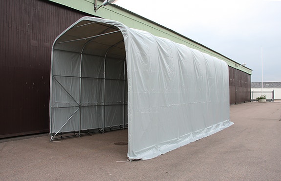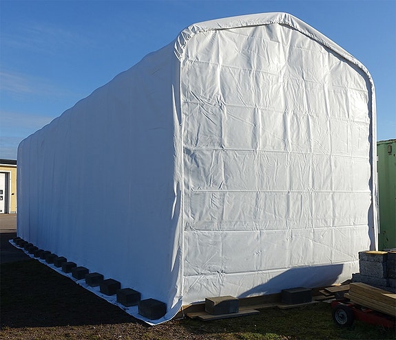 - Sterk og holdbar PVC duk 620g/m² i både tak og gavler.