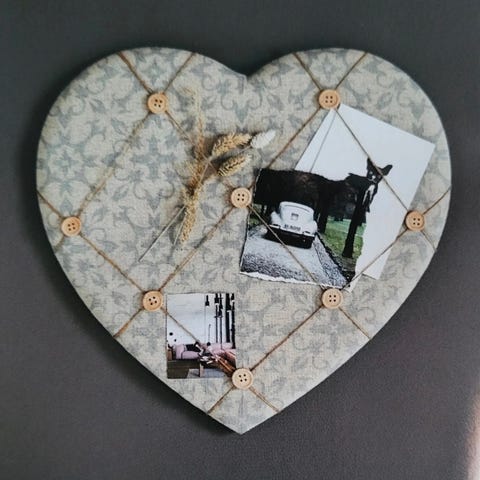 Hos TOWNHOUSE Interiør produserer vi tavler etter mål. Du velger selv det stoffet og størrelsen du ønsker. Vi har også flere typer nagler du kan velge blant. Disse tavlene er supre til kjøkkenet, gangen eller på soverommet.