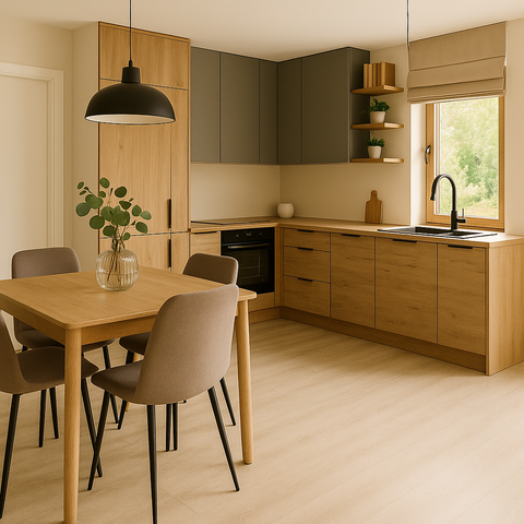 DETTE UNGDOMMELIGE KJØKKENET KOMMER MED MANGE VALGMULIGHETER I FARGER OG TRESTRUKTURER