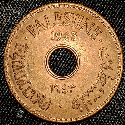 Befolkningen i Judea reiste seg i opprør mot det romerske styret i år 66 e.Kr. Det var en heltemodig krig, men opprøret ble til slutt knust av romerske legioner med Vespasian og Titus som ledere. Jødene preget mynter under hele opprøret, både kostbare shekler i sølv, men også småmynt som disse prutahene. Motivet er en vase på den ene siden og blad på den andre. Vi har en liten gruppe med disse myntene, de er ikke de mest detaljerte, men er priset deretter. Dette er en historisk mynt fra en dramatisk tid. Dette var de siste myntene preget av en jødisk autoritet fram til opprettelsen av staten Israel i 1948.