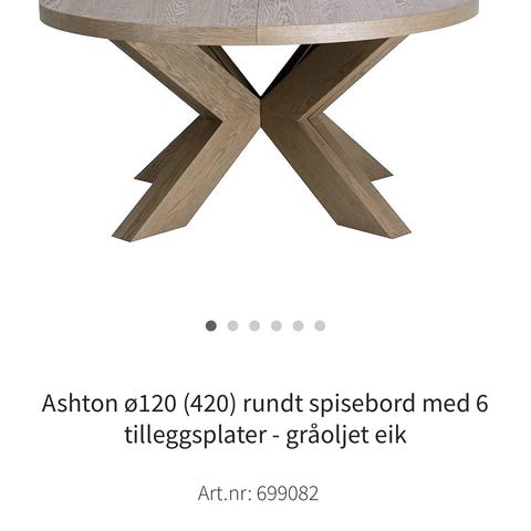 Ashton er et fantastisk flott spisebord hvor du får plass til mange gjester! Med hele 6 medfølgende tilleggsplater kan bordet enkelt bli hele 435 cm langt. Konstruksjonen på bordbena som deler seg når bordet trekkes ut sørger for god støtte og stabilitet. Ashton passer like godt inn i klassiske som i moderne hjem, og til de aller fleste typer spisestoler.