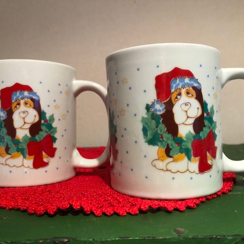 Fargerik kopp med hundemotiv.