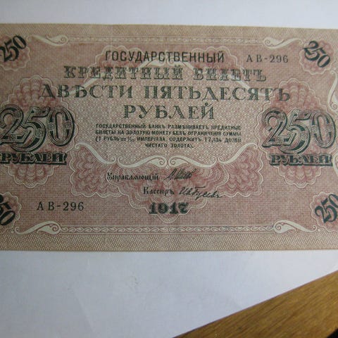 Valør: 100 rubler 1910 og 500 rubler 1912