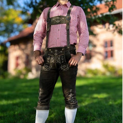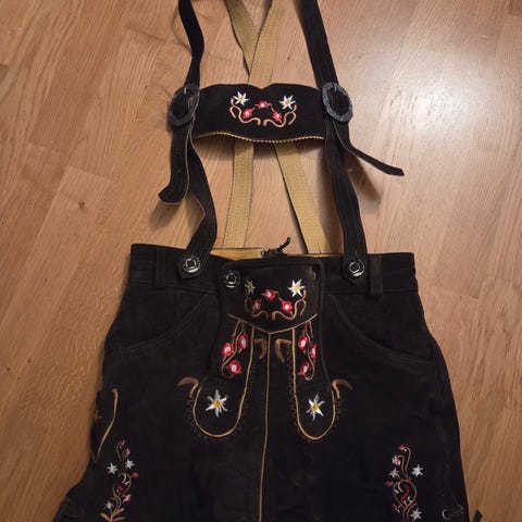 Vi tilbyr ekte klær til Oktoberfest og har en rekke lederhosen (skinnbukser) og dirndl (kjoler) i ulike størrelser og varianter.