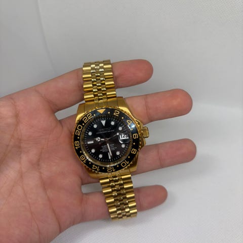 Golden Turtle stil mod kasse i 316L stål for NH urverk i gullfarge.