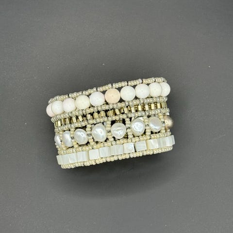 STRECH ARMBÅND HVITE PERLER/KRYSTALER