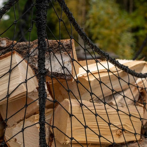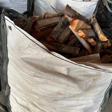 Praktisk og romslig vedkasse, bredde 62 cm, høyde 54 cm, dybde 50 cm. Åpningen er tilpasset standard bæreveske for ved, slik at en slipper søl av rusk og rask rundt vedkassen.