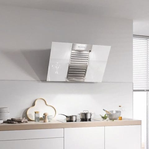 En prisbelønnet wirehengt hette fra Elica, der med sine store dimensjoner passer perfekt til et romlig kjøkken med plass til at bredt sug - også visuelt. Imponerer med enkel form og elegante kurver.