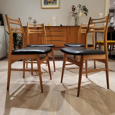 Vi har vintage spisestoler fra Børge Mogensen, Fredrik Kayser, Bendt Winge, Torbjørn Afdal og flere – i tidløse materialer som teak, eik og palisander. Kvalitetsmøbler med sjel og patina.