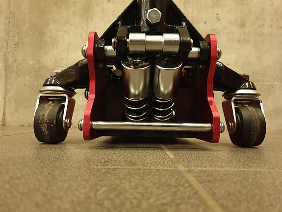 Pressen har justerbar rask utveksling på pumpa.