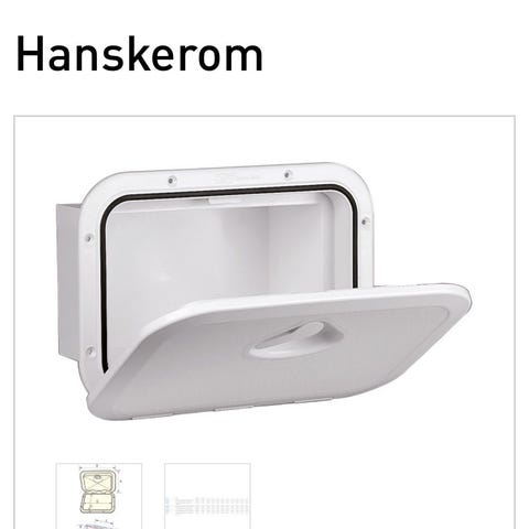 Åpen oppbevaringsboks/hanskerom med bøyle i hvit ASA-plast.