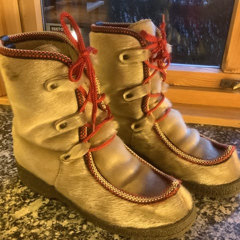 De originale Nesnalobbene, LAV modell selges for 950,- til barn og 1290,- til voksne. Nesnalobben HØY (Polarlobben) selger vi for 1890,- (str. 36-48). Vi har flere farger å velge mellom, grå, røde og svarte. Husk at disse skoene er små i størrelsen så du trenger 1-2 nummer større enn du bruker til vanlig. Supre sko i kaldt vintervær.